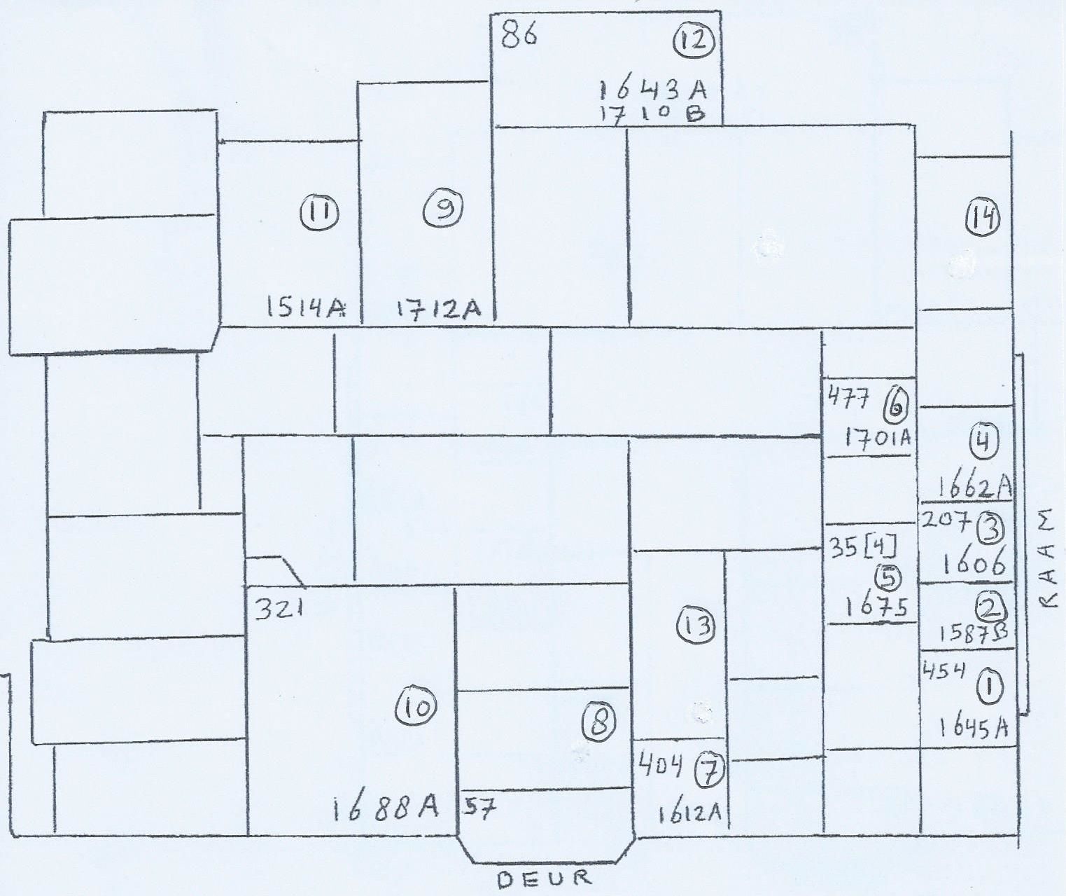 Op onderstaande tekening wordt per zerk achtereenvolgens gerefereerd aan: